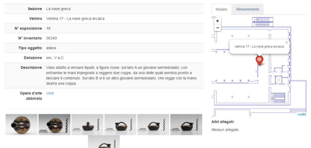 - Una, ad accesso riservato, dedicata alla catalogazione dei reperti museali e delle opere d’arte a queste abbinate,