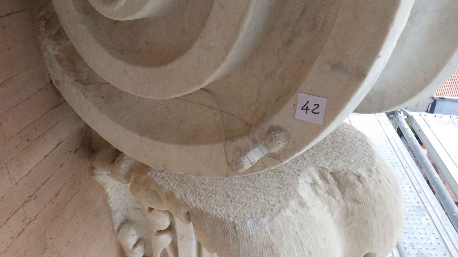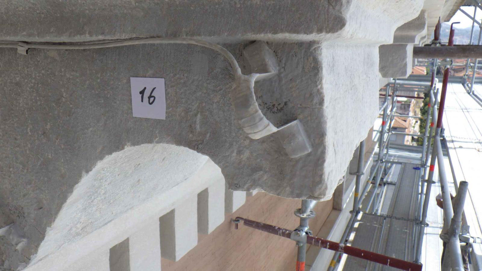 Il sistema di monitoraggio è stato installato su di una parte dell’immensa superficie delle facciate in corso di restauro e raccoglie i dati rilevati da una rete di sensori applicati su alcuni elementi architettonici.