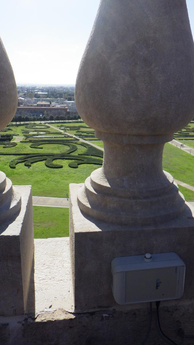 Il sistema è stato realizzato nell’ambito di un ampio lavoro di restauro durato circa due anni che ha interessato le facciate della Reggia di Caserta. lo scopo di questo progetto pilota è di monitorare lo stato di elementi lapidei nei quali, durante la fase di rilievo, sono stati individuati elementi di vulnerabilità, e di individuare un modello replicabile su tutte le facciate interne ed esterne della Reggia e su qualsiasi altro edificio che necessiti di un costante ed approfondito monitoraggio delle condizioni dei materiali e della struttura. Ciò consentirà, sia di controllare costantemente l’eventuale insorgere di condizioni di allerta o di allarme attivando l’esecuzione degli interventi necessari ad eliminare le condizioni rischio per i fruitori del monumento, sia di permettere la comprensione dei fenomeni di evoluzione del degrado sulle facciate della Reggia avendo così a disposizione un concreto strumento di supporto per la progettazione di ulteriori interventi di manutenzione preventiva ed allontanare l’ipotesi di onerosi interventi di restauro.